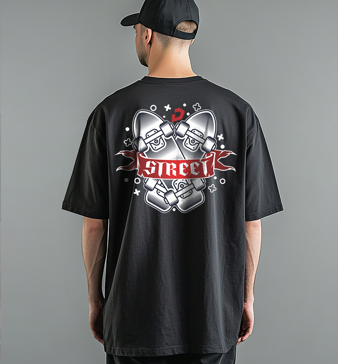 A Camiseta Oversized Street é uma peça de estilo despojado e confortável. Feita com 100% de algodão, fio 30.1 penteado, possui gola 2x1 canelada reforço de ombro a ombro, oferecendo conforto e durabilidade. Nossa modelagem oversized, com corte mais "quadrado", garante um visual moderno, proporcionando liberdade de movimento.