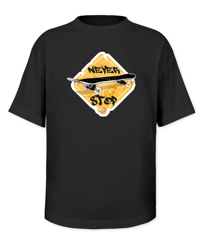 A Camiseta Oversized Never Stop é uma peça de estilo despojado e confortável. Feita com 100% de algodão, fio 30.1 penteado, possui gola 2x1 canelada reforço de ombro a ombro, oferecendo conforto e durabilidade. Nossa modelagem oversized, com corte mais "quadrado", garante um visual moderno, proporcionando liberdade de movimento.