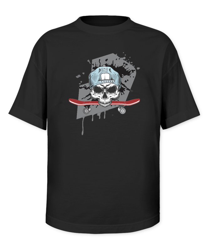 A Camiseta Oversized Caveira é uma peça de estilo despojado e confortável. Feita com 100% de algodão, fio 30.1 penteado, possui gola 2x1 canelada reforço de ombro a ombro, oferecendo conforto e durabilidade. Nossa modelagem oversized, com corte mais "quadrado", garante um visual moderno, proporcionando liberdade de movimento.